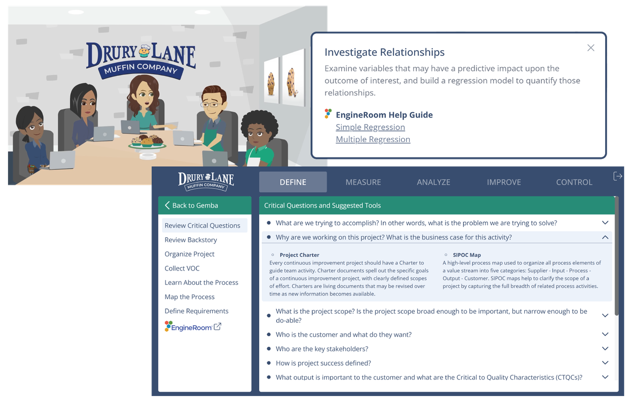Drury Lane is seamlessly woven into MoreSteam's Lean Six Sigma eLearning, giving participants the opportunity to apply what they're learning in a realistic, project-based environment. By working through a structured DMAIC case study as they progress through training, learners strengthen both their understanding and confidence in using process improvement tools while getting more comfortable dealing with ambiguity.