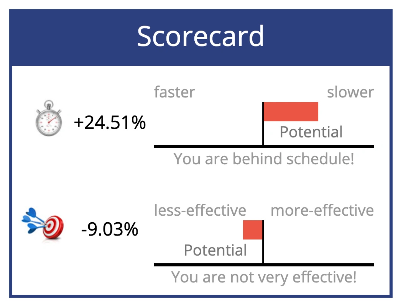 - Provides immediate feedback about the likely impact on project effectiveness and timeliness based on the participant's responses